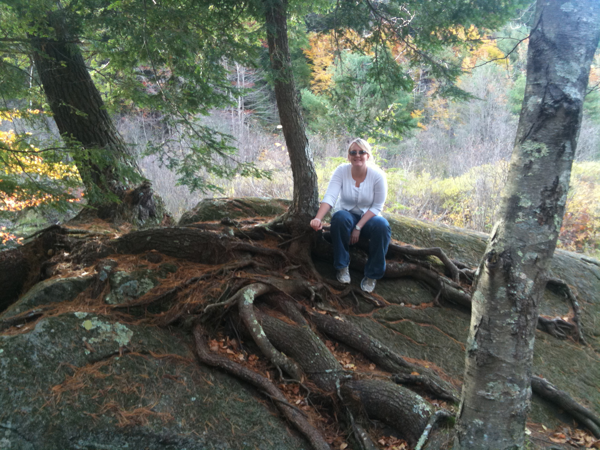 We left Hartford on Thursday afternoon and just motored around the Connecticut countryside. We decided to take the most indirect route possible to the Berkshires, taking us through as many small towns and little highways as humanly possible. We drove by one place that looked particularly inviting for us to get out and stretch our legs. A2 saw a tree that was growing out of a rock: